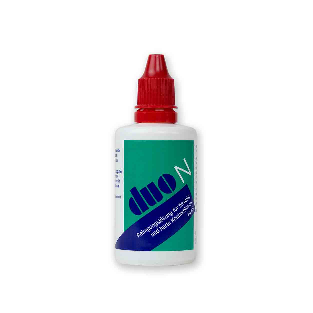 Gebrauchsanweisung: Nach dem Händewaschen werden die Kontaktlinsen mit einigen Tropfen duo N Reinigungslösung für ca. 30 Sekunden in der Handfläche massiert. Danach werden die Kontaktlinsen sorgfältig mit Kochsalzlösung abgespült. Anschließend werden die Kontaktlinsen für mindestens vier Stunden in dem mit duo N Aufbewahrungslösung gefüllten Behälter aufbewahrt. Vor dem Einsetzen werden die Kontaktlinsen noch einmal gründlich mit Kochsalzlösung abgespült.